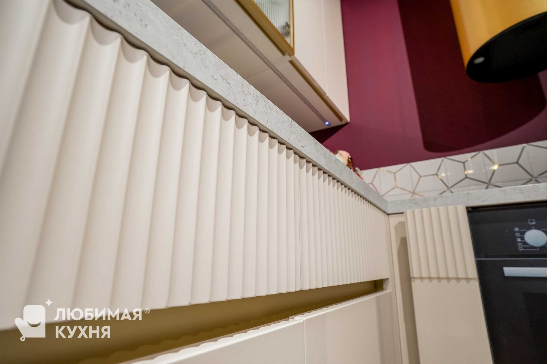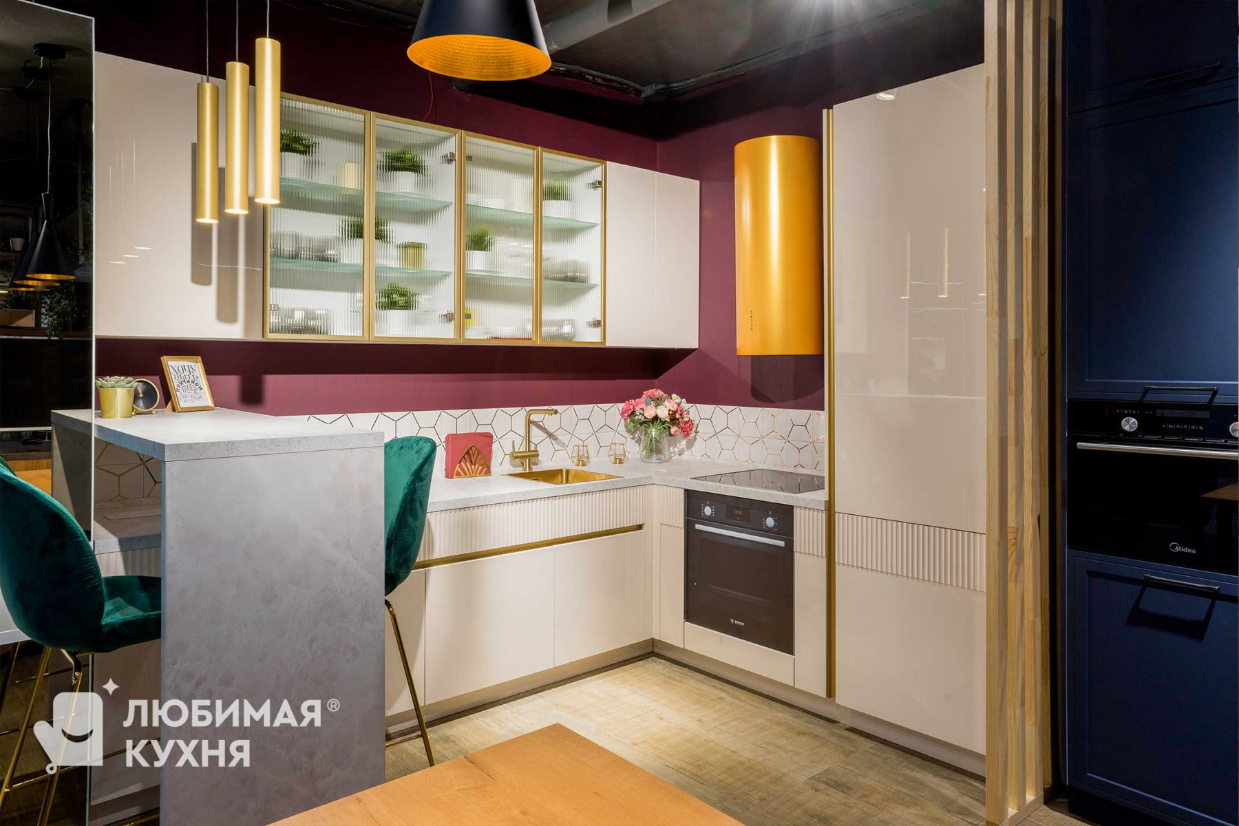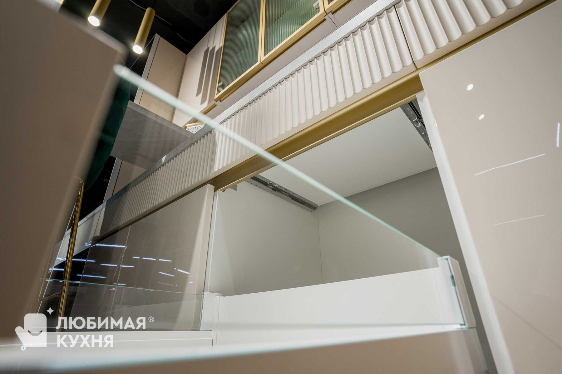 МДФ в эмали NCS S 0804-Y50R, стекло Виктория в золотой рамке