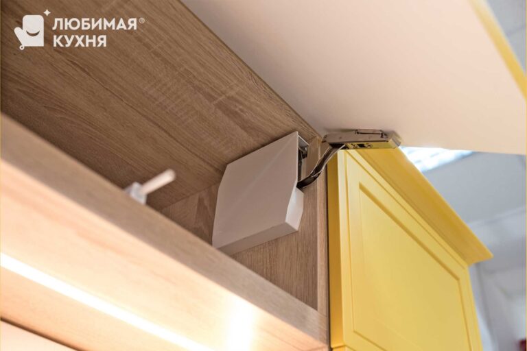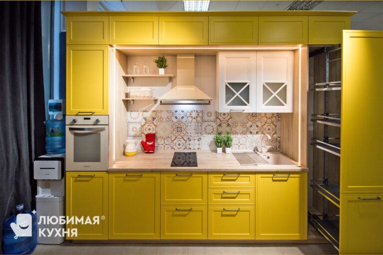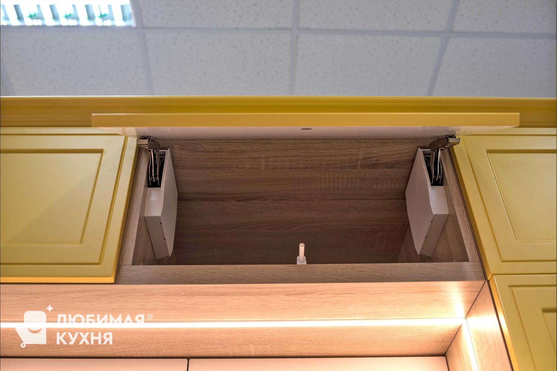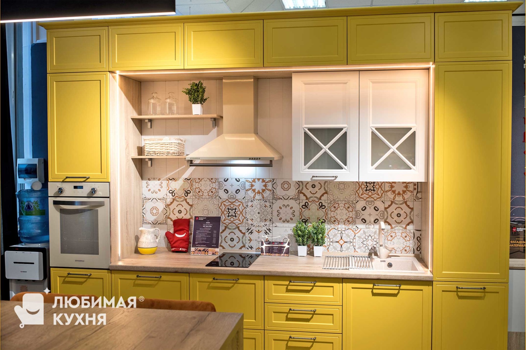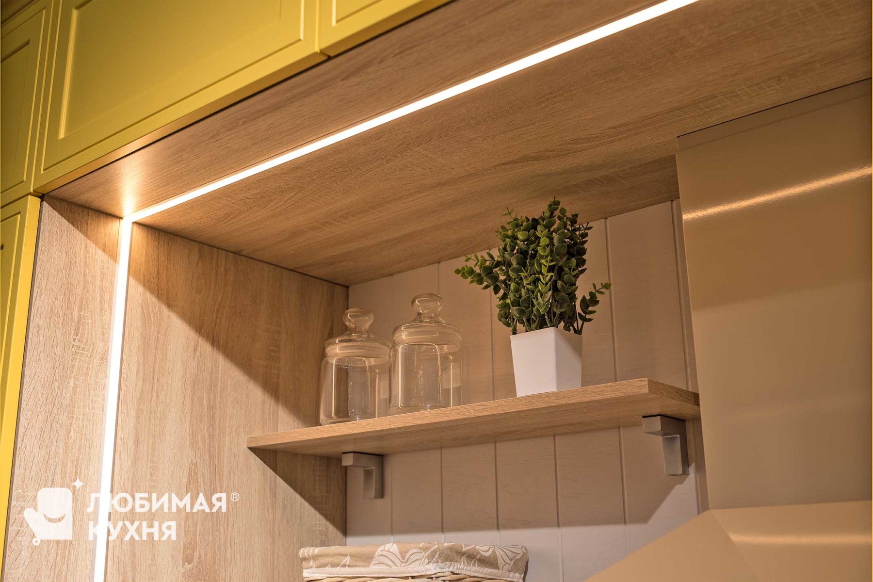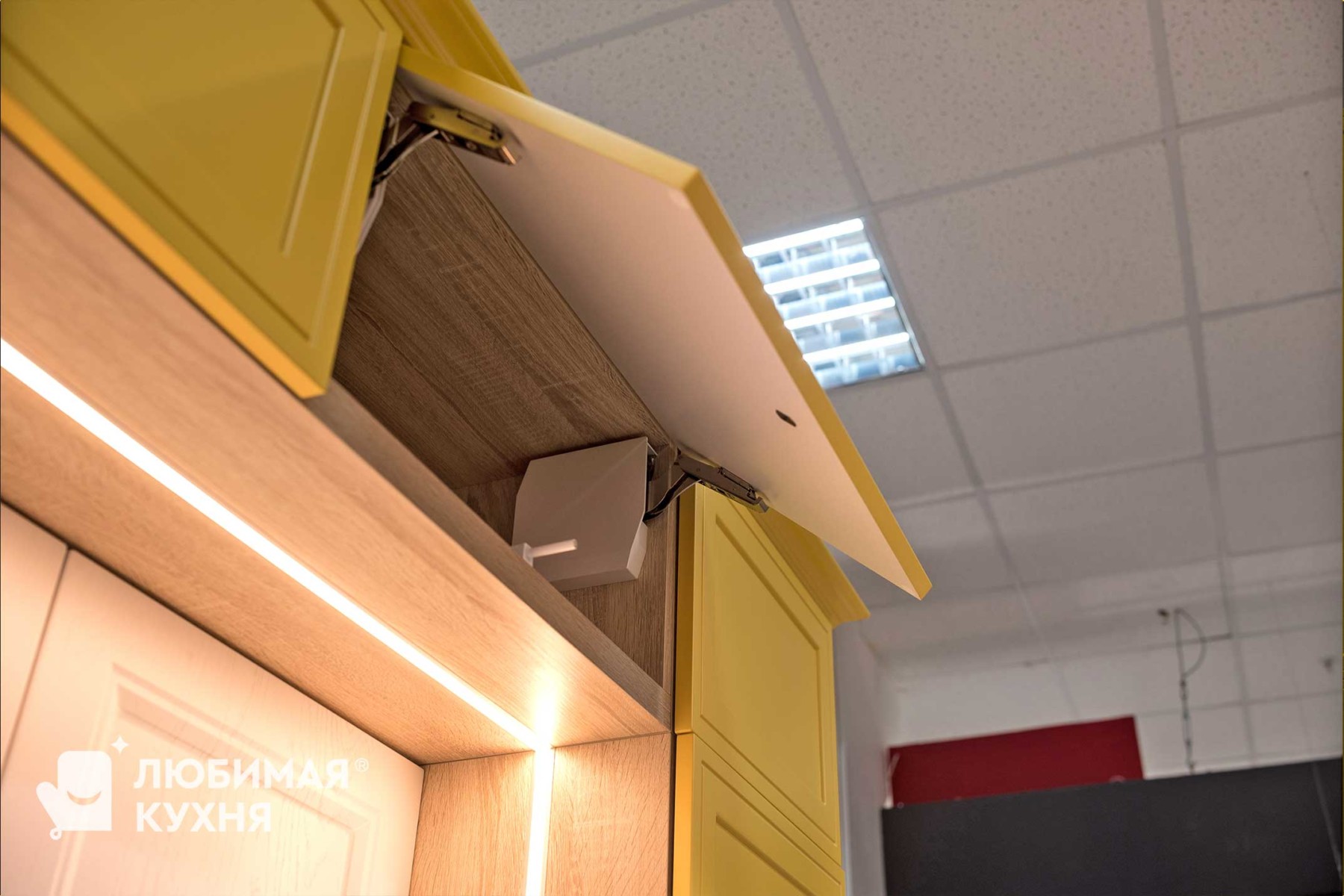 МДФ эмаль матовая, цвет: NCS S 1050-Y10R, фреза Шарлотт, витрины фреза Шато со стеклом сатин