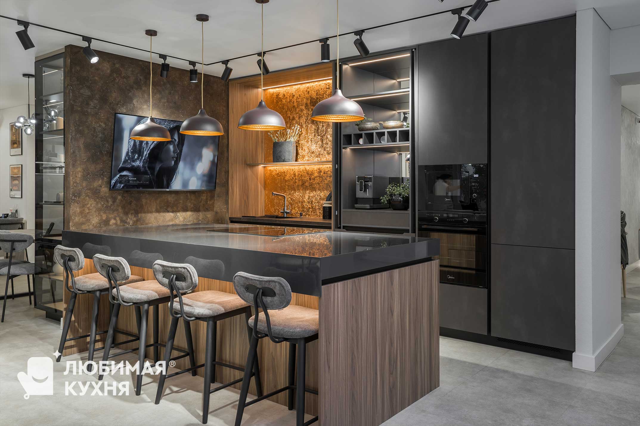 Коллекция Urban, серия Mattelux, цвет Сталь темная 18 мм. Фасады острова: Wood karera 18мм