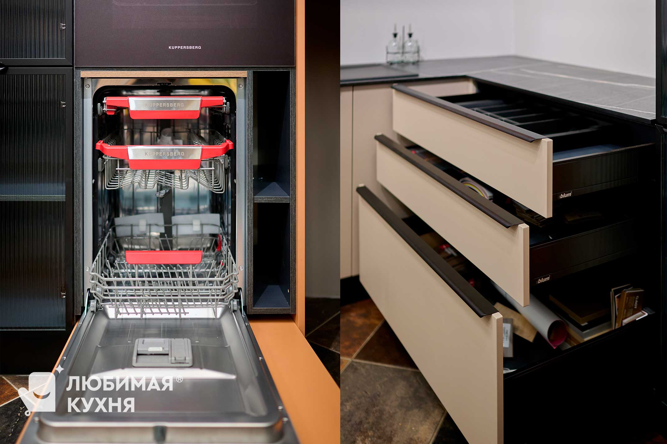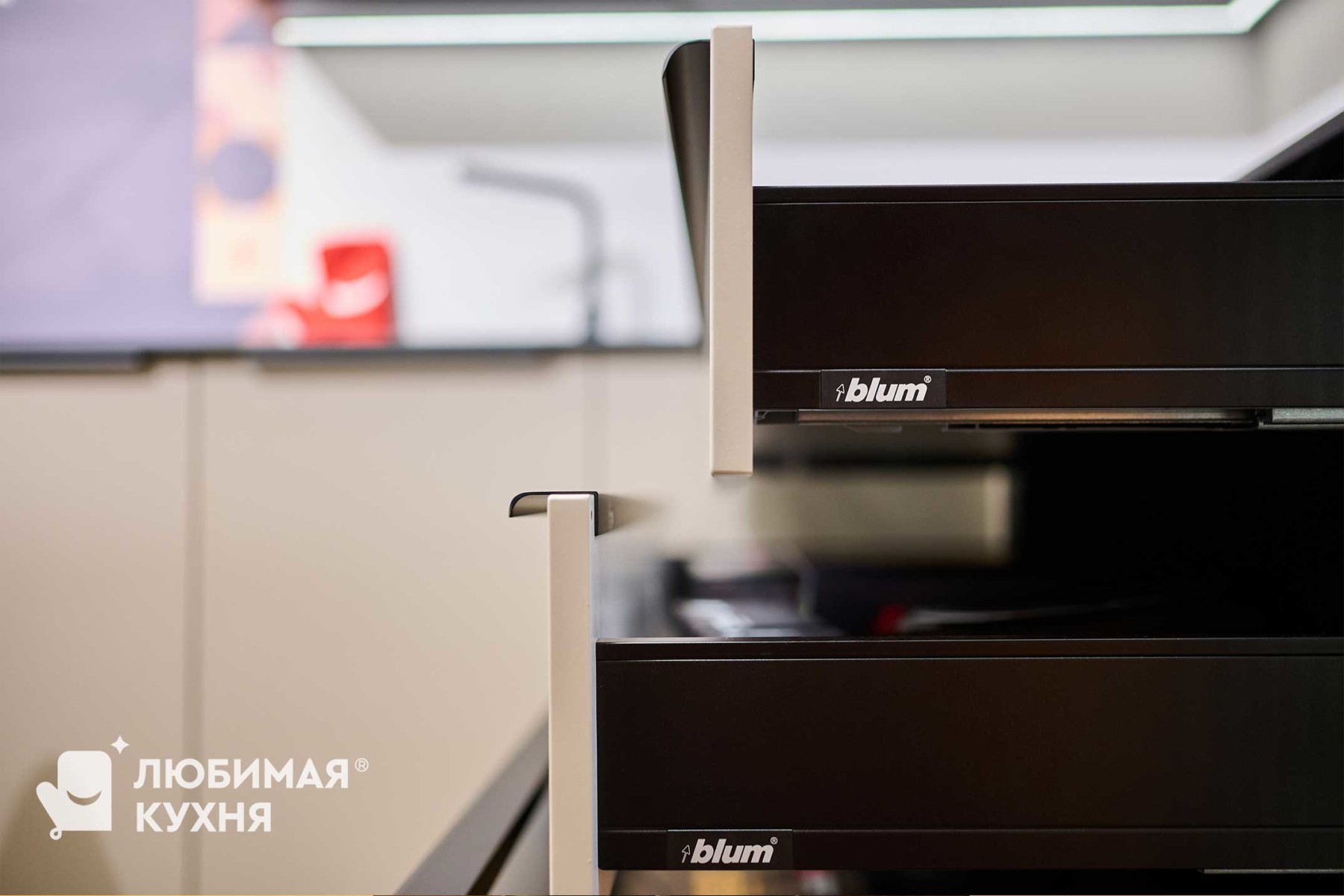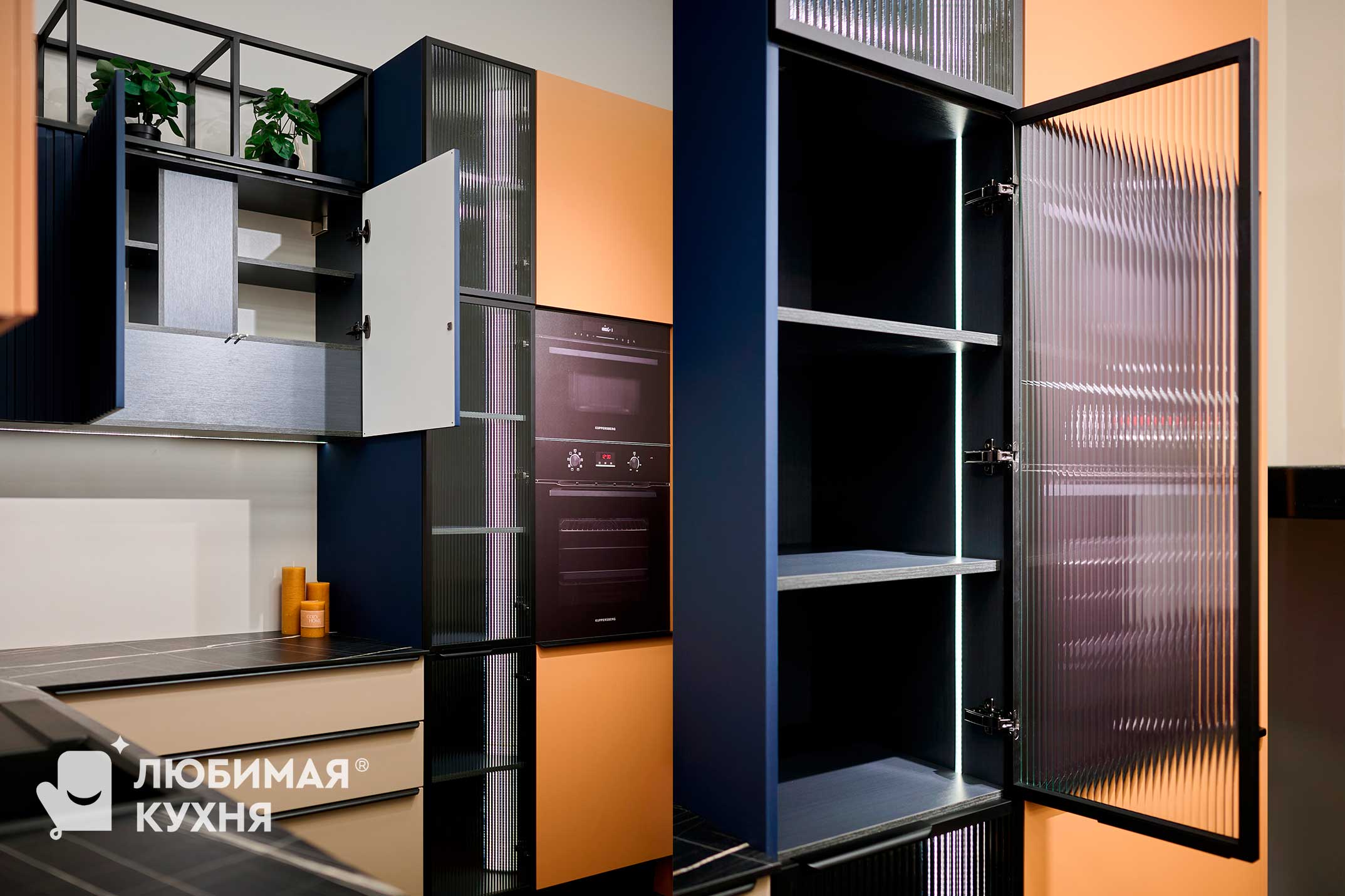 коллекция Urban/ серия Mattelux Карамель нюд, МДФ в термопластике Океания/фреза Альберо и Софт Мокко/фреза Модерн, витрина из алюм.профиля 19 мм черная