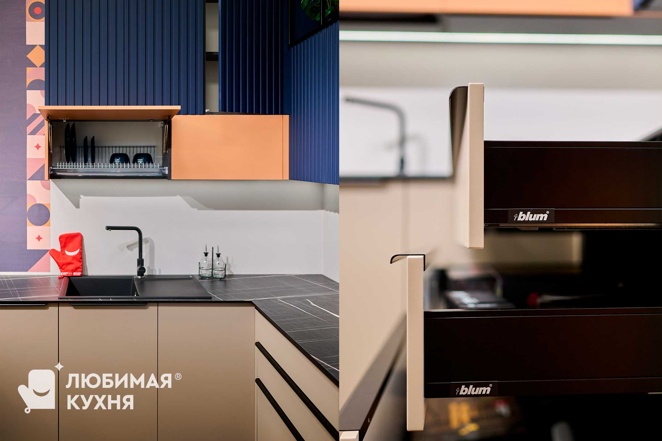 Геометричная кухня в ярком цветовом решении. Свежесть и дух бунтарства воплощен в данной модели кухни!