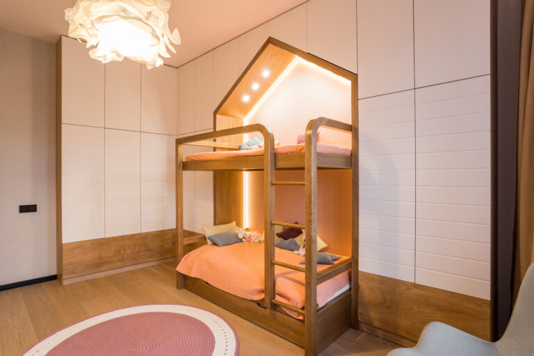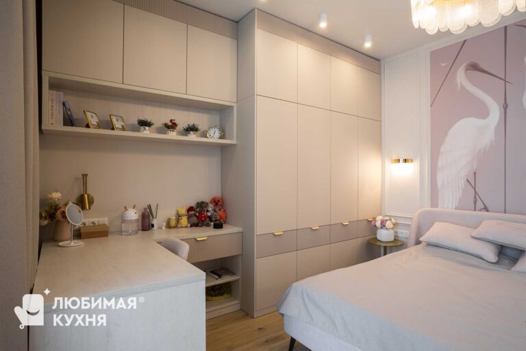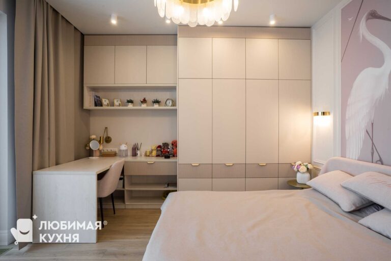 При выборе учитывайте ширину и высоту спальни, а также пространство для открывания дверей. Стандартная глубина — 50–60 см, но можно сделать шкаф под индивидуальные размеры, чтобы использовать каждый сантиметр эффективно.