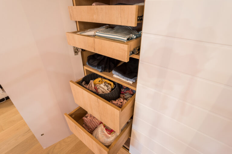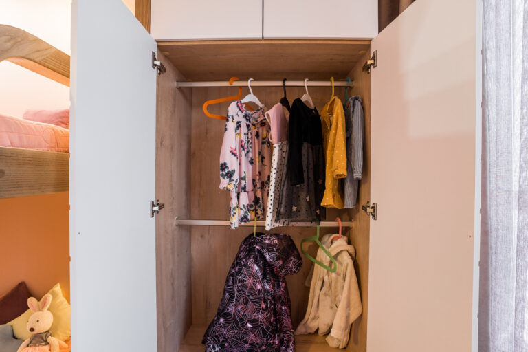 Распашной шкаф открывается наружу, позволяя сразу видеть всё содержимое. В отличие от шкафа-купе, двери не раздвигаются, что упрощает доступ к одежде, обуви и аксессуарам и облегчает организацию внутреннего пространства.