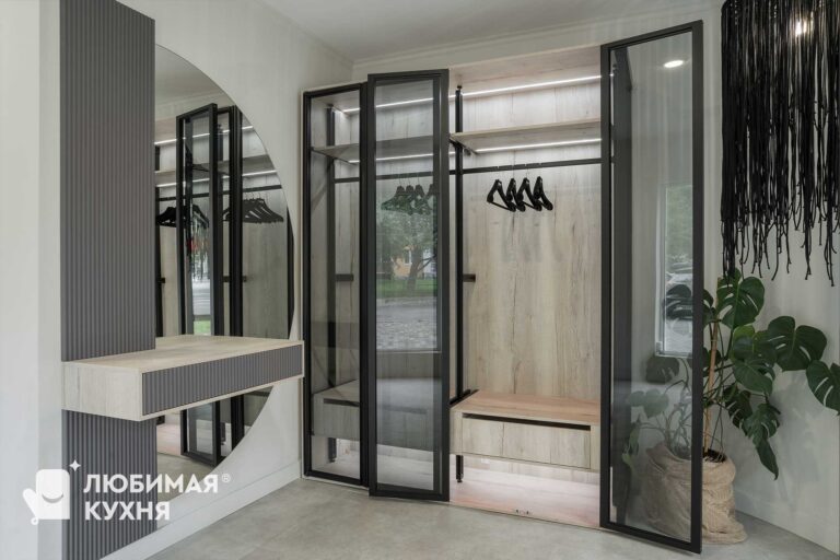 Стеклянный распашной шкаф — это шкаф с дверцами из стекла (прозрачного, матового или тонированного), которые открываются наружу. Его преимущество — визуальная лёгкость, эффект «витрины» и возможность демонстрации содержимого, что делает интерьер более воздушным и стильным.