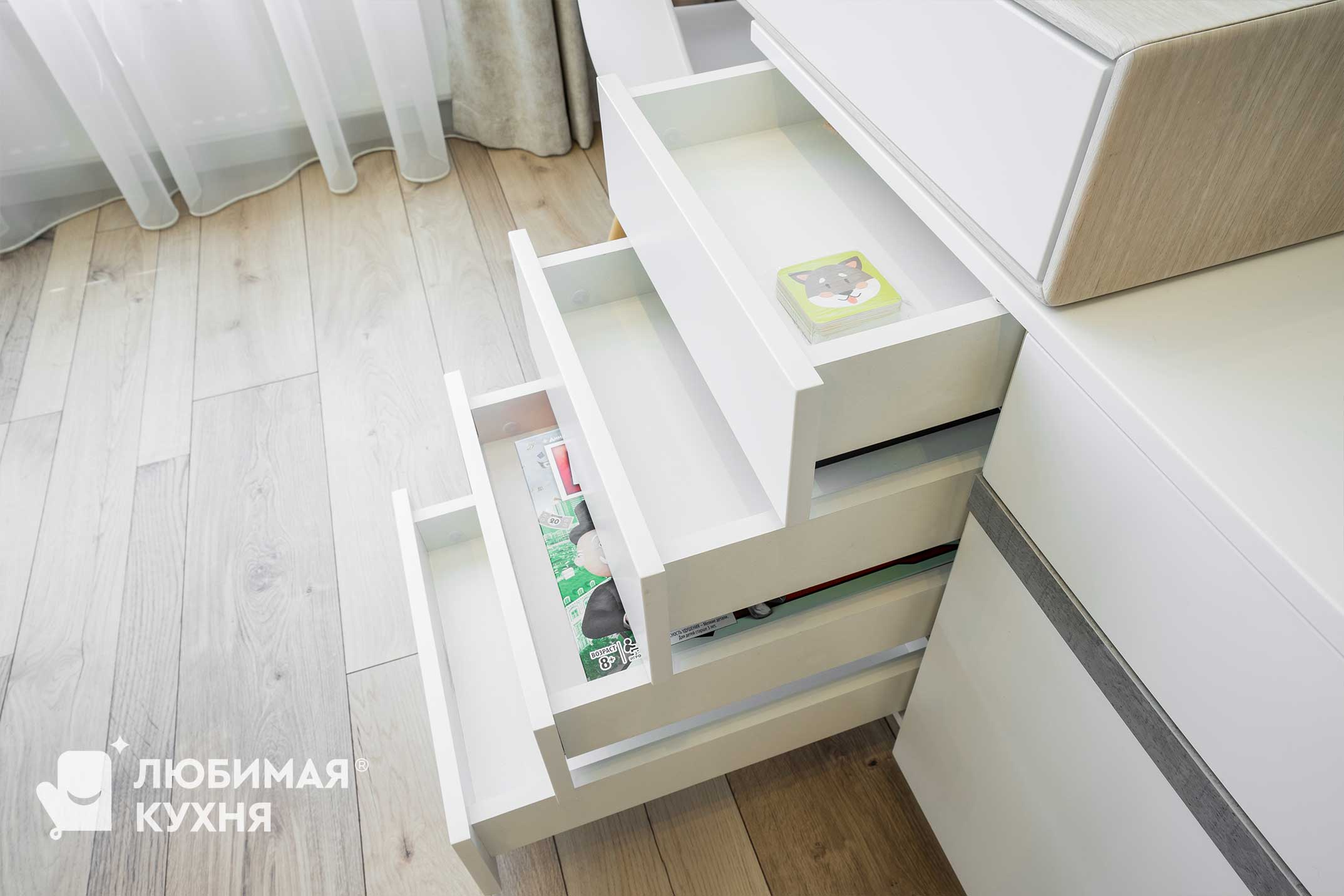 Многофункциональная Тв тумба с письменный столом. Необычный дизайн тумбы позволил расположить шкафчики для хранения под ТВ, ящики для письменного стола, стол с выдвижным ящиком. Интересное и нестандартное решение, для хоум-офиса