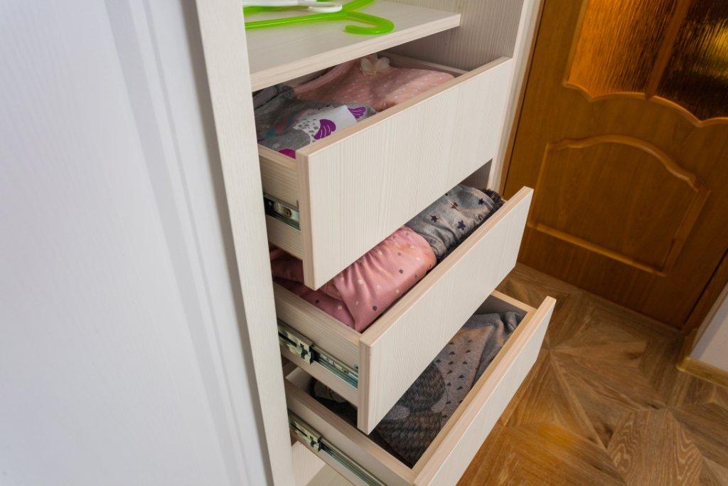 Изысканный и почти воздушный шкаф-купе. Дополнительную легкость придают двери со стеклом в рамке. Шкаф прекрасно подойдет как для молодой семьи, так и для людей постарше. Шкаф с пятью отделениями. Первое отделение с антерсольной полкой, секцией со штангой для вещей на плечиках и выкатной корзиной. Второе отделение с секцией для гладильной доски, сушки для белья и отсеком для утюга. Третье отделение с секцией с полками. Четвертое отделение с полками, секцией со штангой для вещей на плечиках, нижней полкой. Последнее отделение с полками и выдвижными ящиками.