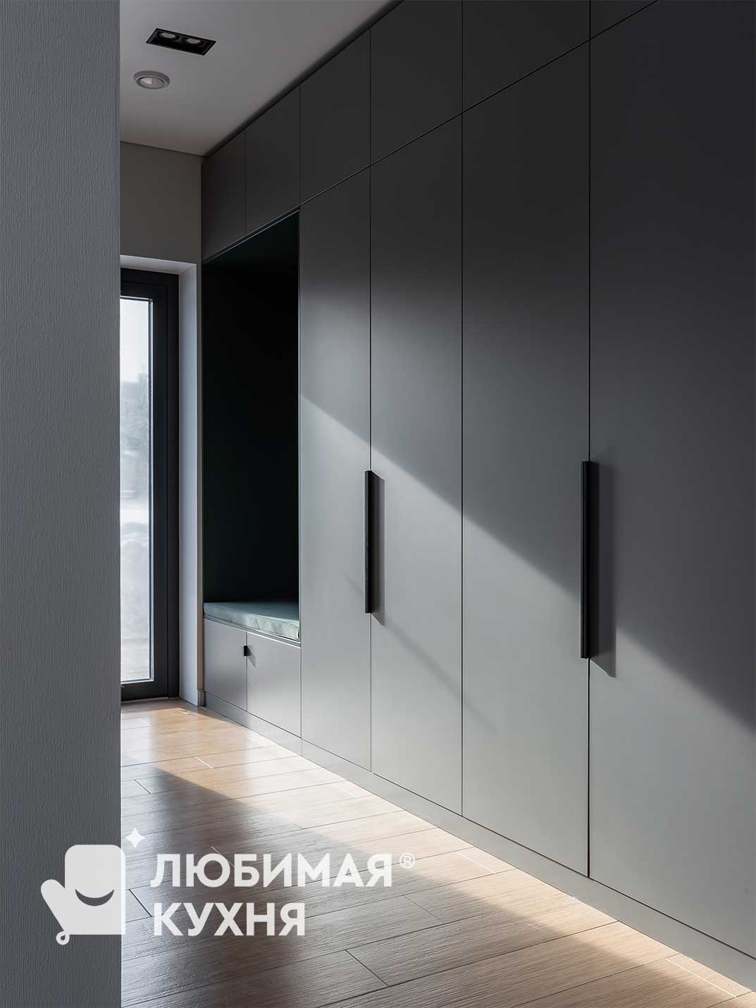 Встроенный шкаф в прихожей, выполненный в природных оттенках. Лаконичный дизайн, простая геометрия придадут вашему интерьеру завершенный и гармоничный вид. Все ваши вещи будут скрыты за фасадами, поддерживая порядок в прихожей. А функциональное наполнение поможет организовать пространство!