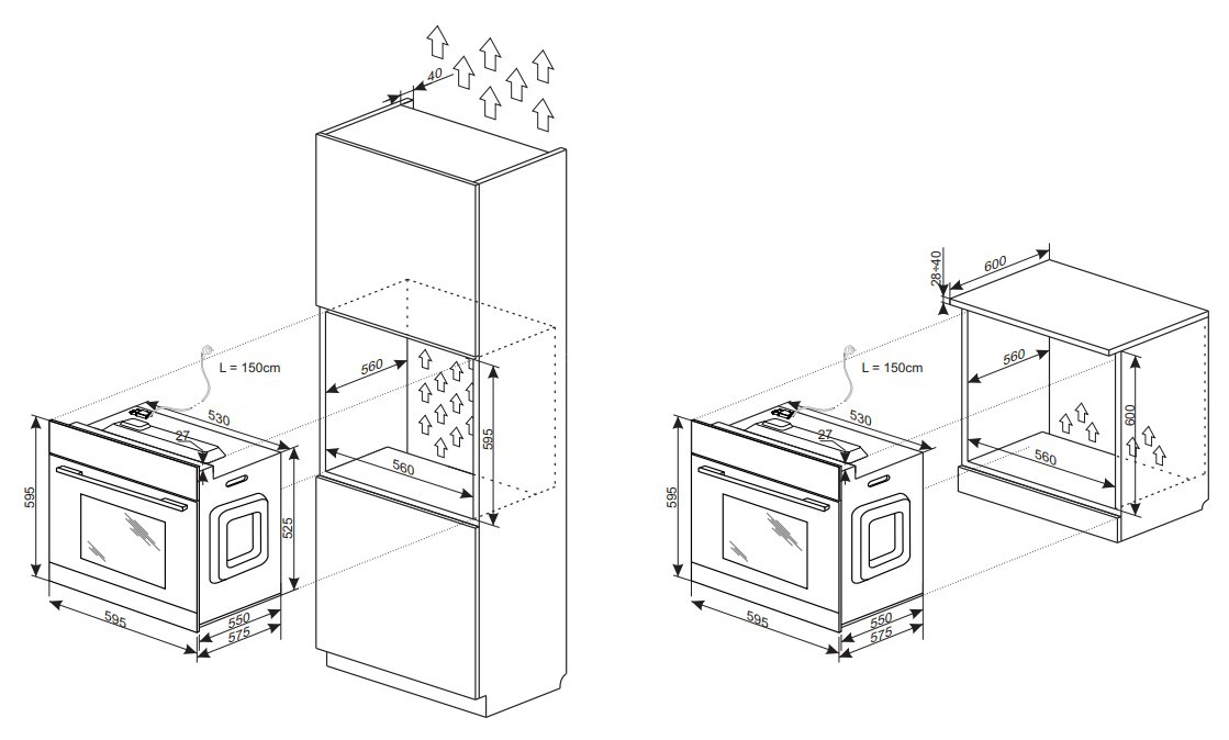 - Ниша для встраивания (В х Ш х Г), см : 60 х 56 х 56