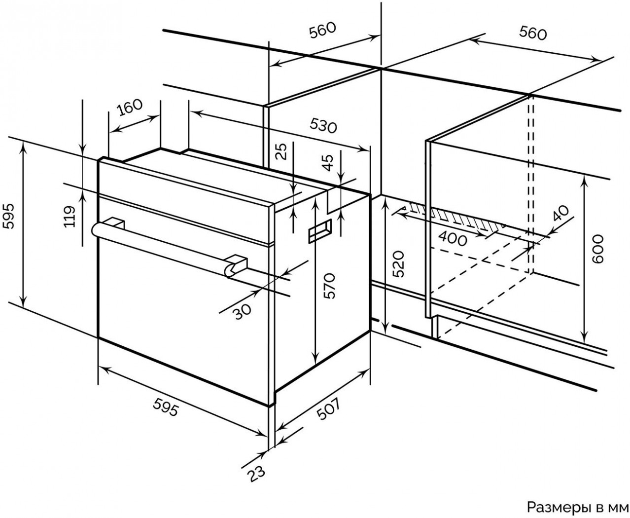 - Глубина встраивания — 55.2 см
