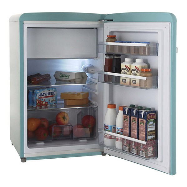 Холодильник Hansa FM1337.3JAA выполнен в компактном корпусе голубого цвета и напоминает отдаленно устройство с ретро-дизайном. Размеры олодильника 55x86x61.5 см позволяют использовать его в помещении с ограничением пространства. Это могут быть комнаты общежития или кухни в однокомнатных квартирах старого образца. Общий объем внутреннего пространства модели равен 106 л. Внутри прибор разделен на два отделения – морозильное и холодильное. Холодильник поддерживает ручное размораживание, поэтому вам придется ухаживать за ним.