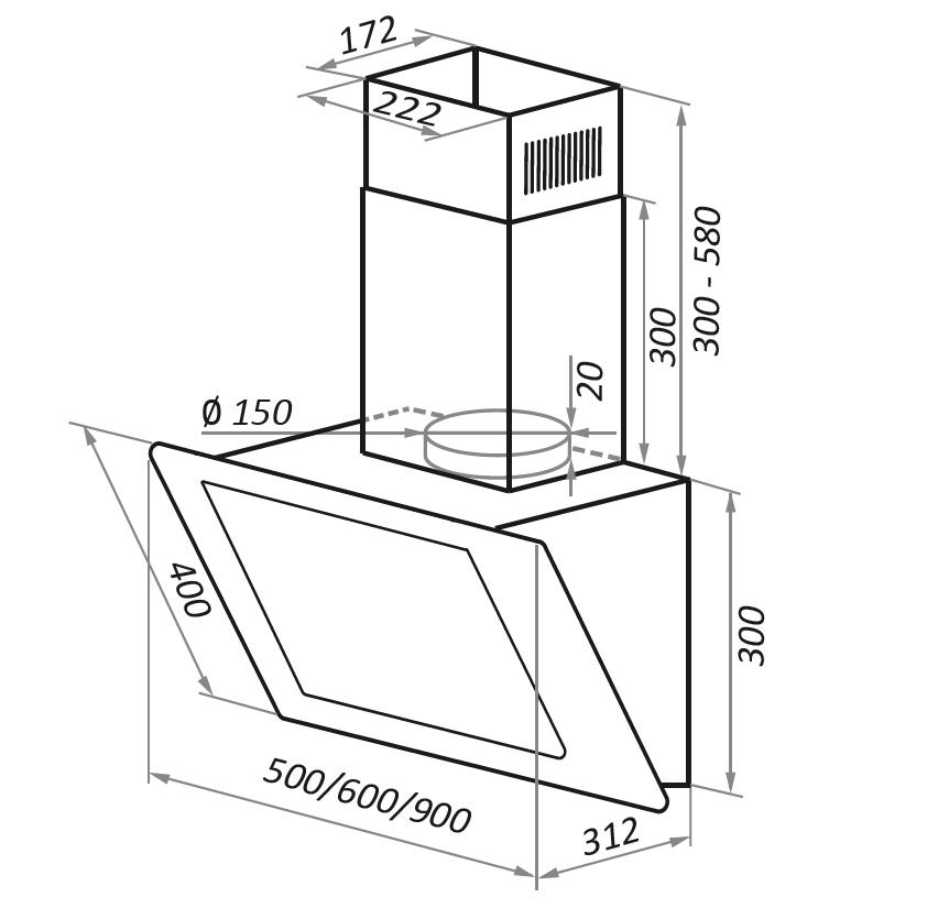 - Тип вытяжки — наклонная