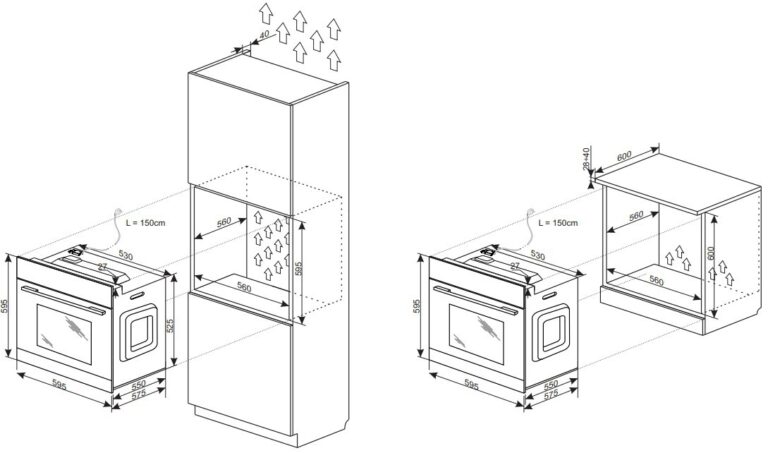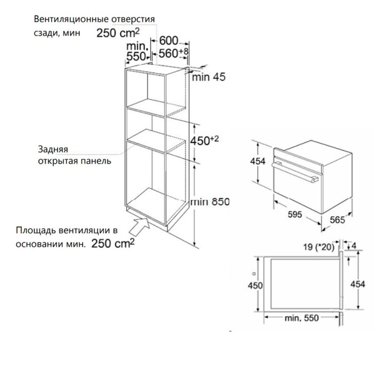 - Глубина встраивания — 55 см