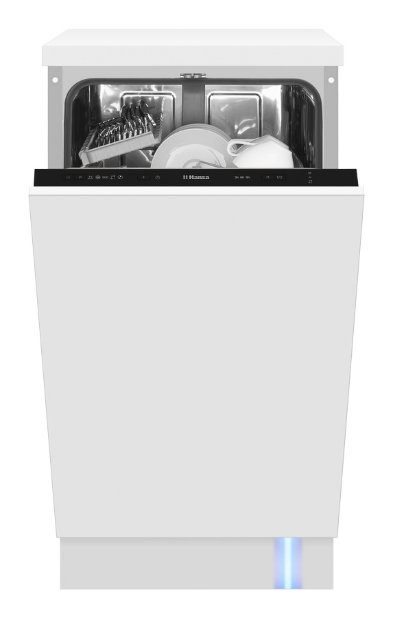 Посудомоечная машина Hansa ZIM 415 BQ представляет собой встраиваемую модель шириной 45 см. Оснащена 5 стандартными программами и функцией половинной загрузки. Есть возможность отсрочки старта от 3 до 9 часов — очень удобно выставлять таймер на вечернее время суток.