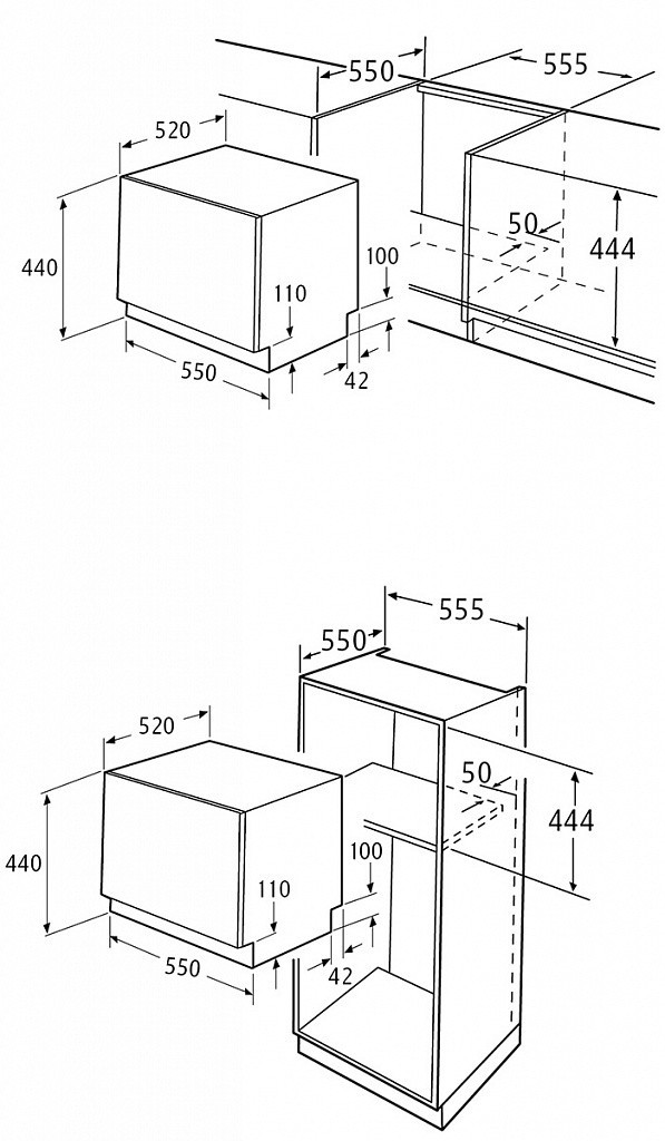 - Ниша для встраивания (В*Ш*Г), мм: 444*555*550