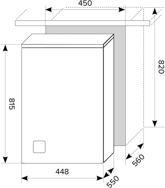 - Размер для встраивания — 820 × 450 × 560 мм