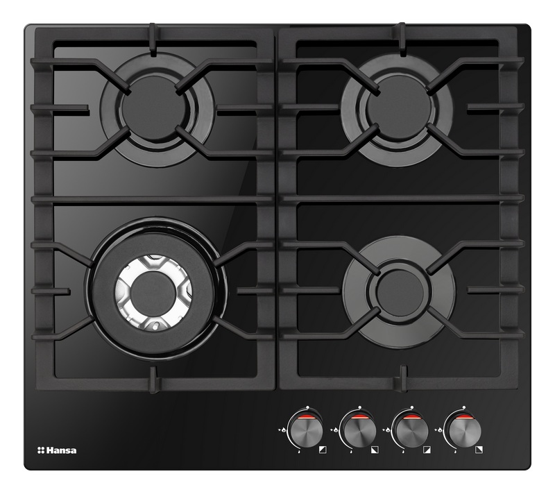 Газовая варочная поверхность Hansa BHKS611301 состоит из 4 разноразмерных конфорок, размещенных на панели из черного закаленного стекла. Это значит, что одновременно прибор позволяет готовить до 4 блюд. Одна из конфорок обладает расширением типа «Двойная корона», поэтому на нее можно устанавливать крупную посуду или вок. Опция газ-контроля прекратит подачу топлива, если огонь зальет кипящий бульон. А очистить в этом случае готовочную панель будет легко за счет выбранного производителем материала изготовления.