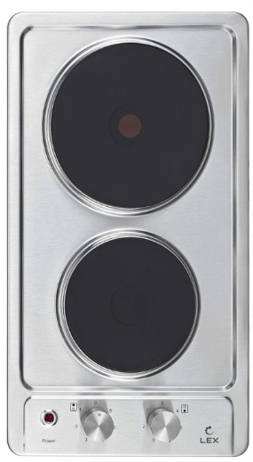 Варочная поверхность LEX EVS 320 IX имеет 2 электрические конфорки размером 145 мм и 180 мм. Устройство позволяет использовать 6 уровней мощности при помощи удобных поворотных рычагов.