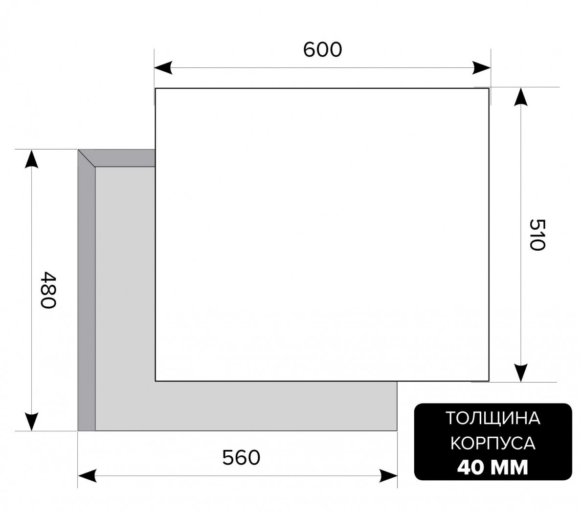 - Толщина корпуса — 40 мм;