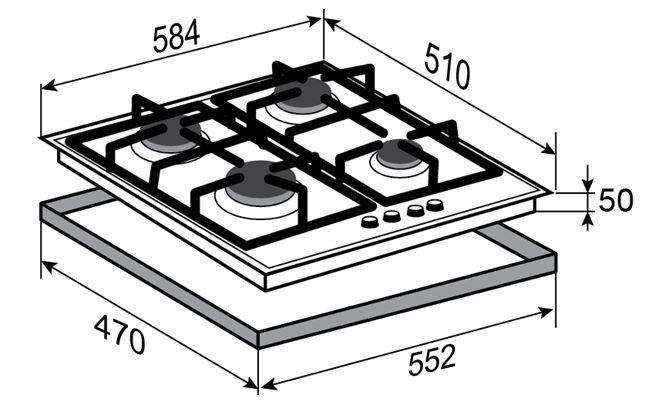 - Мощность горелок, Вт — 3300; 1600; 1600; 1000