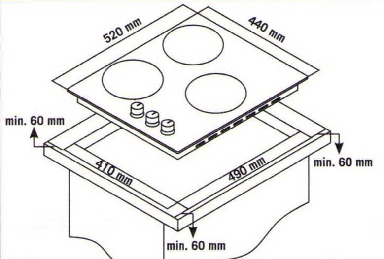 - Газовых конфорок — 3