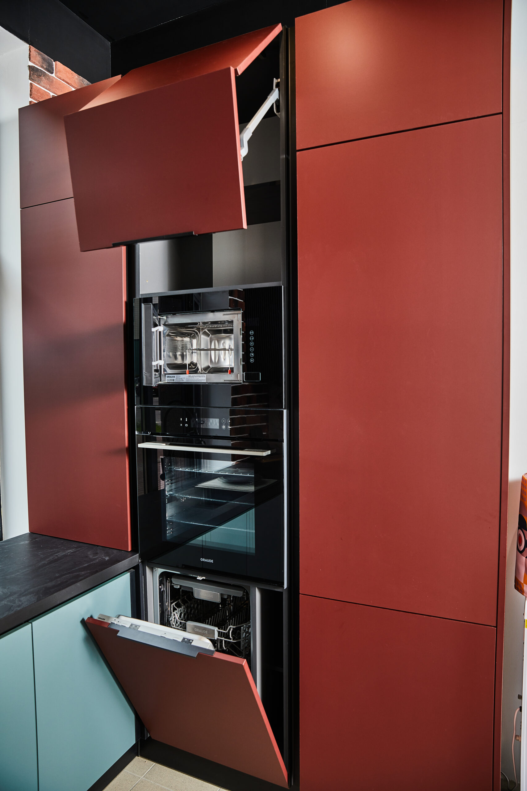 Всю технику дизайнер подбирает в салоне, сразу учитывает необходимые параметры встраивания именно в вашу кухню.В итоге быстрый монтаж и отсутсвие зазоров.