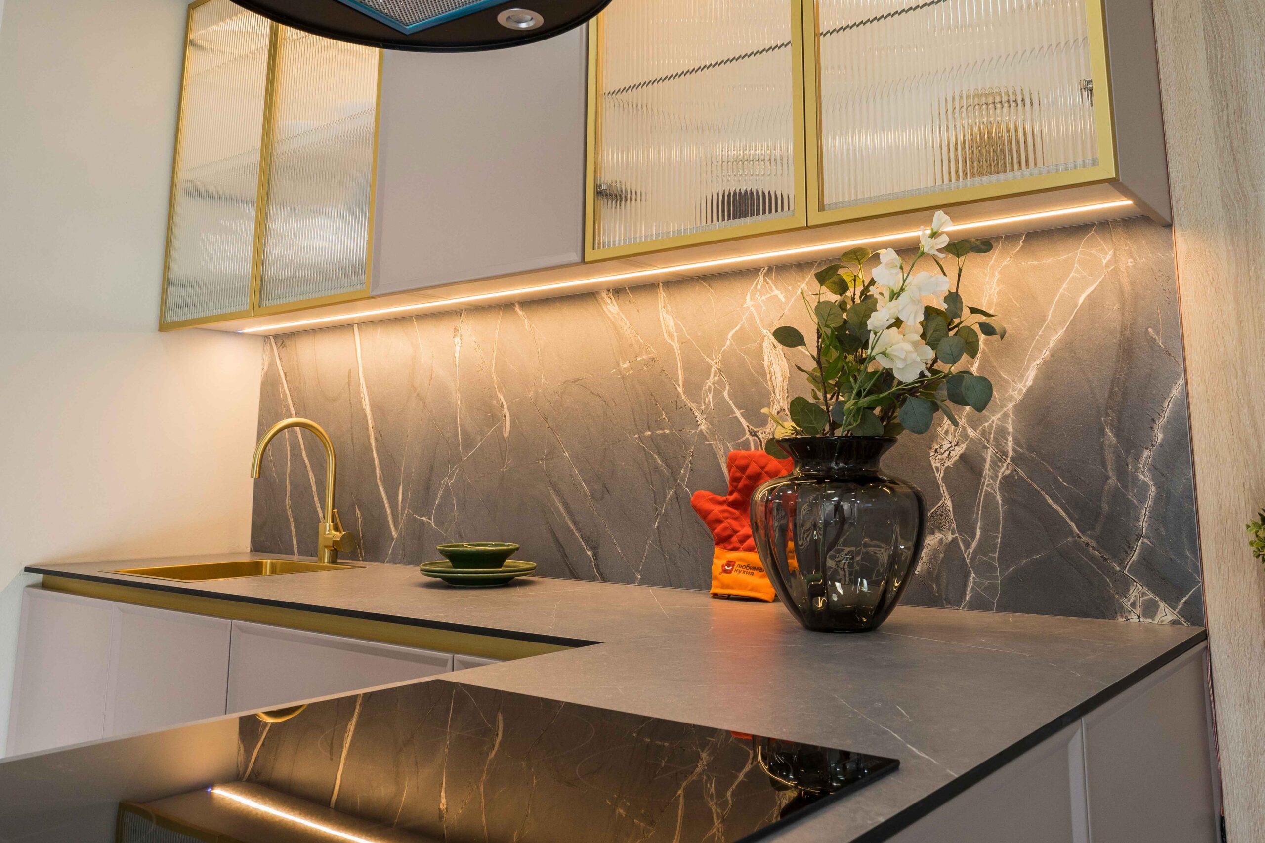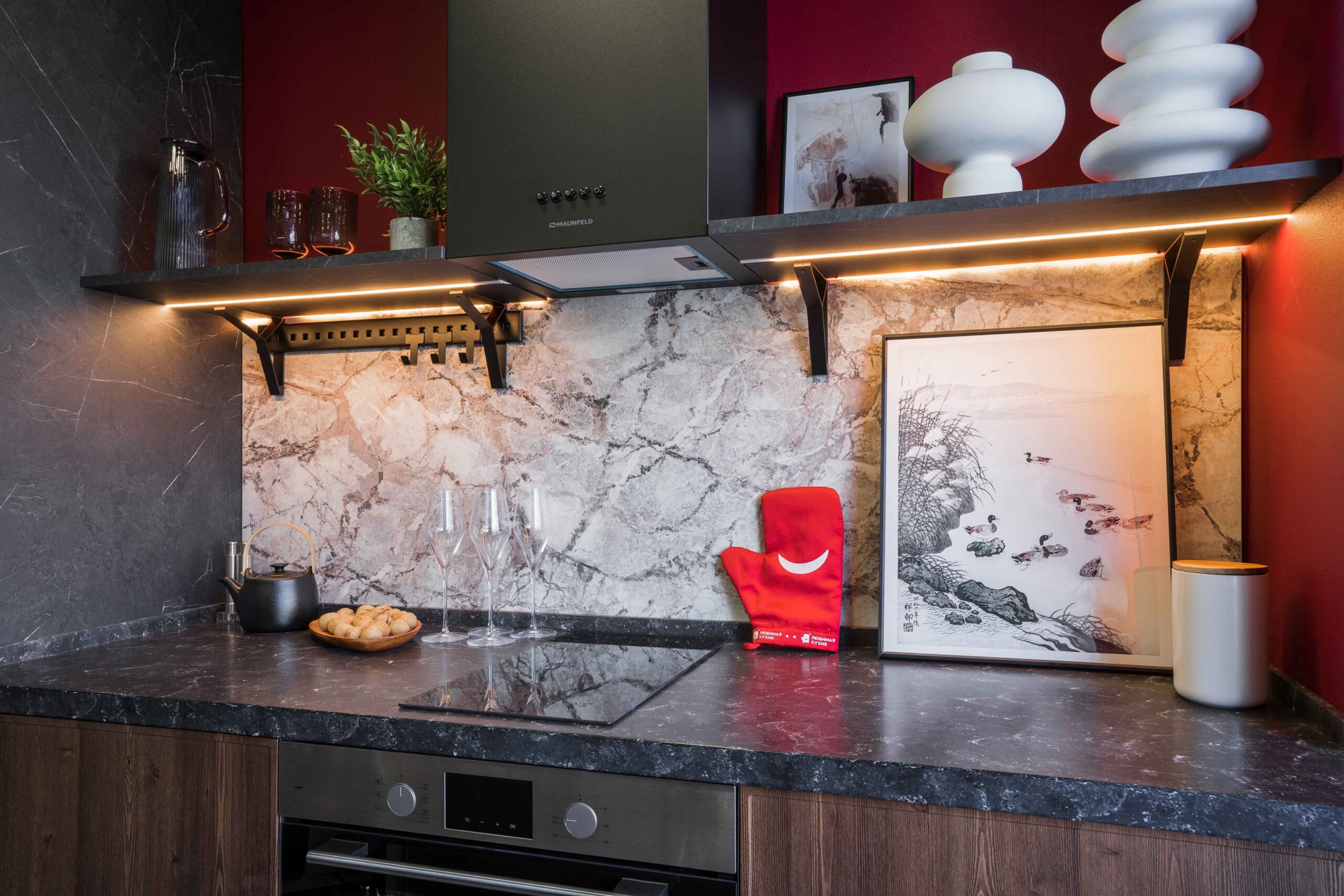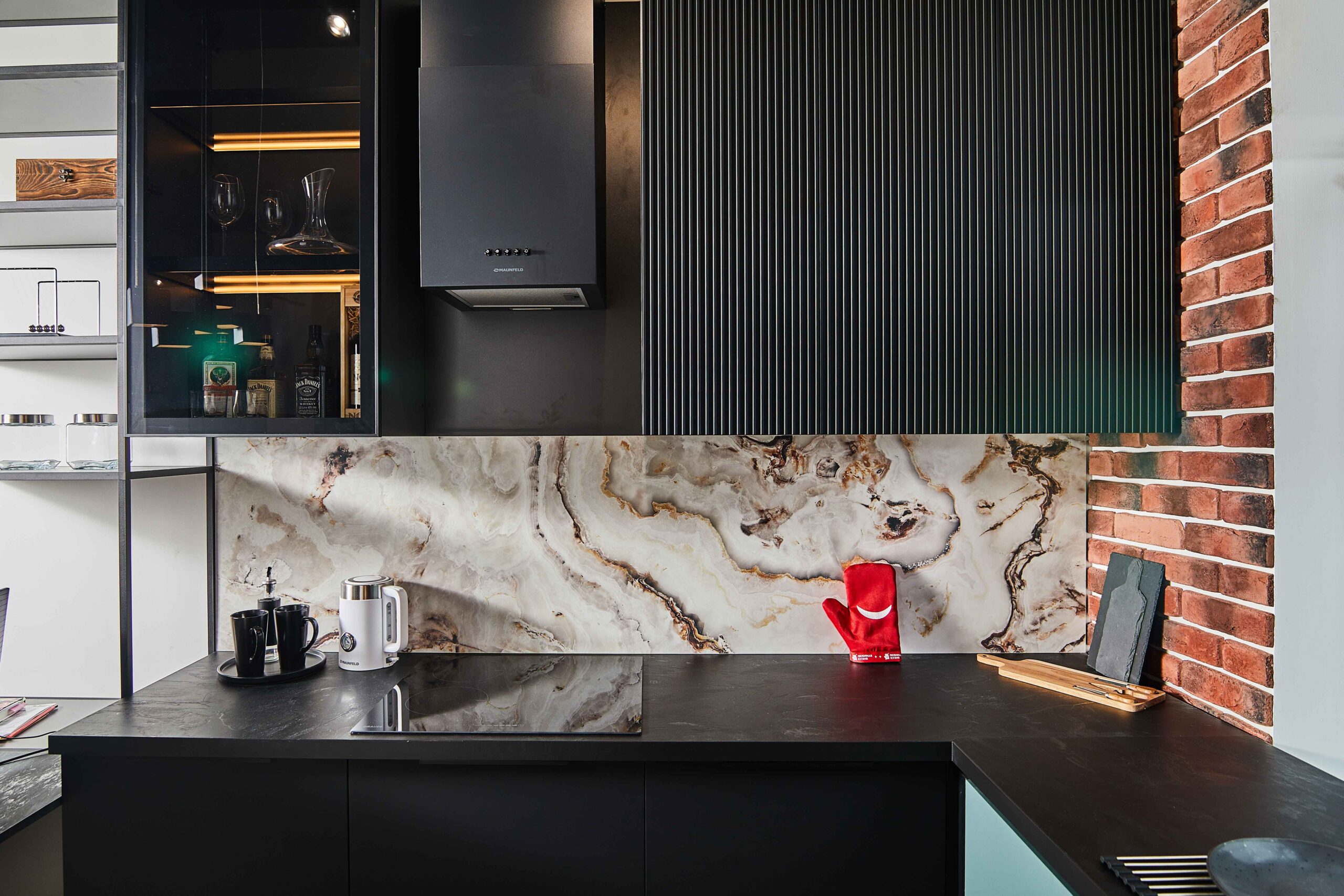 Кухонный фартук - это не только защита стен от брызг и жира, но и важный элемент дизайна. Акцентный фартук из пластика под цвет столешницы или прозрачное стекло для сохранения уникальности фактуры вашей стены. Выбор за вами!