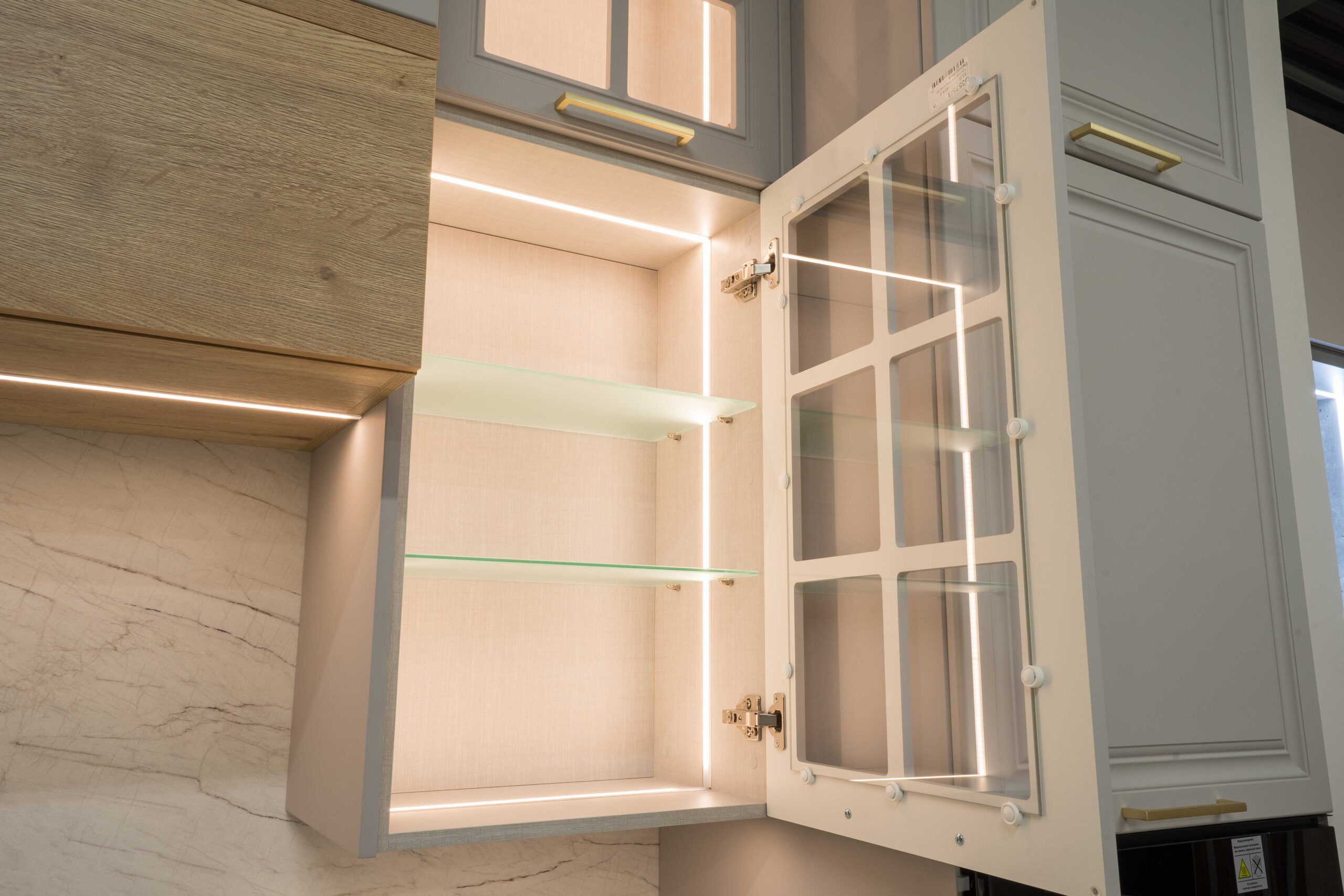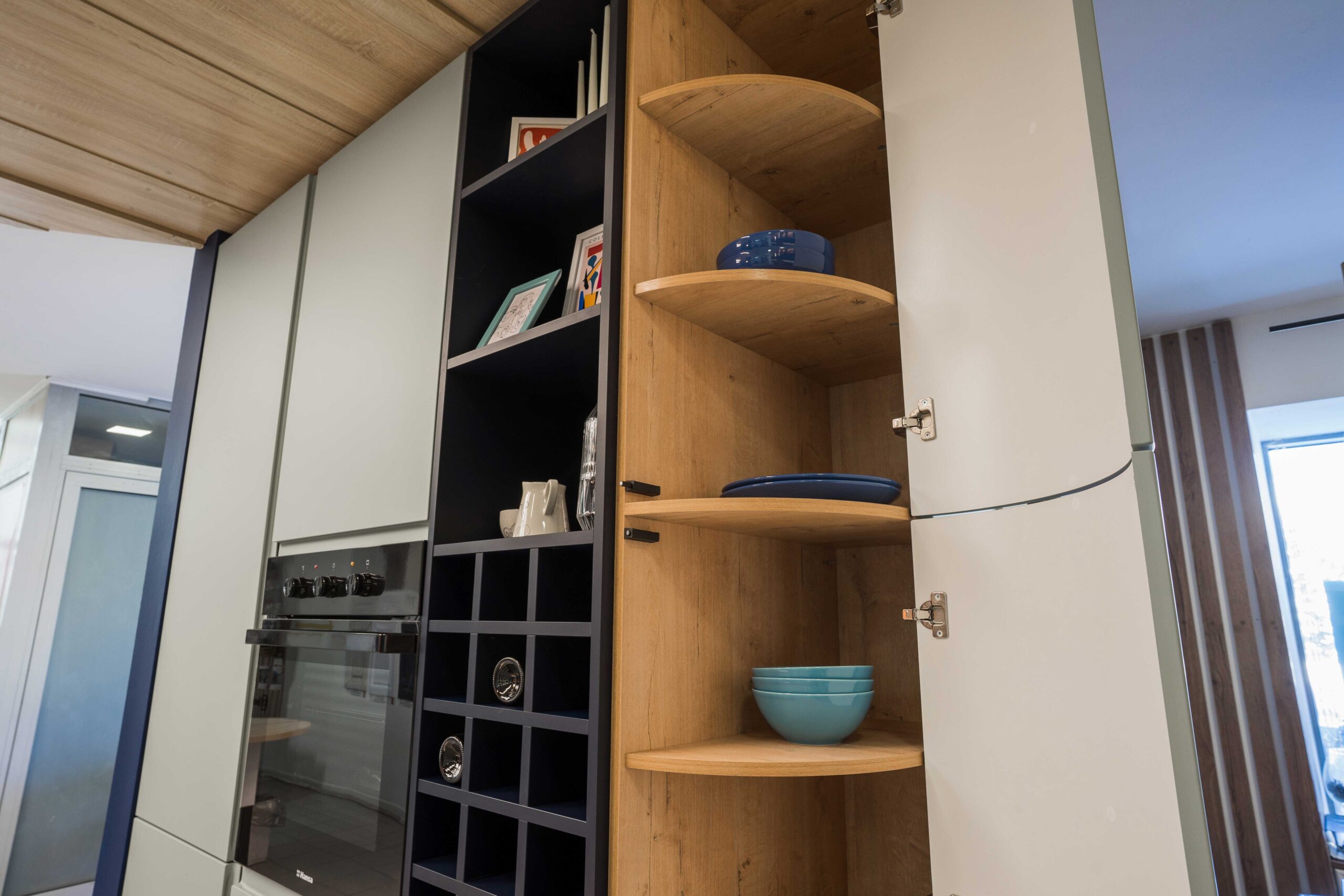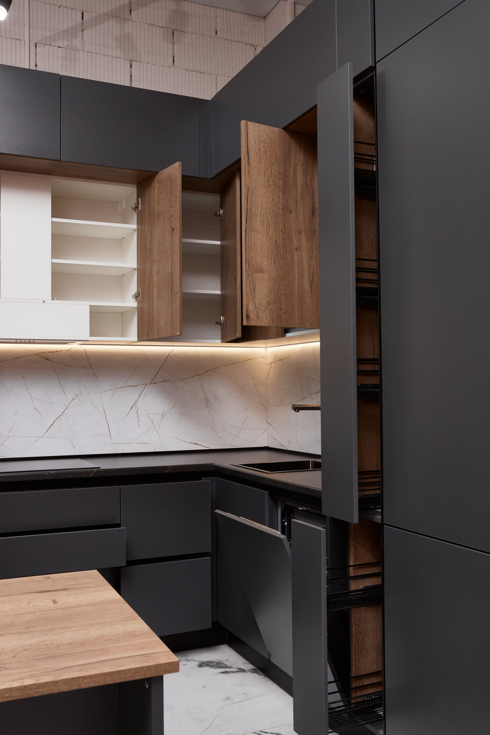 В одном проекте мы слёгкостью объединяем разные цветовые решения корпуса кухни