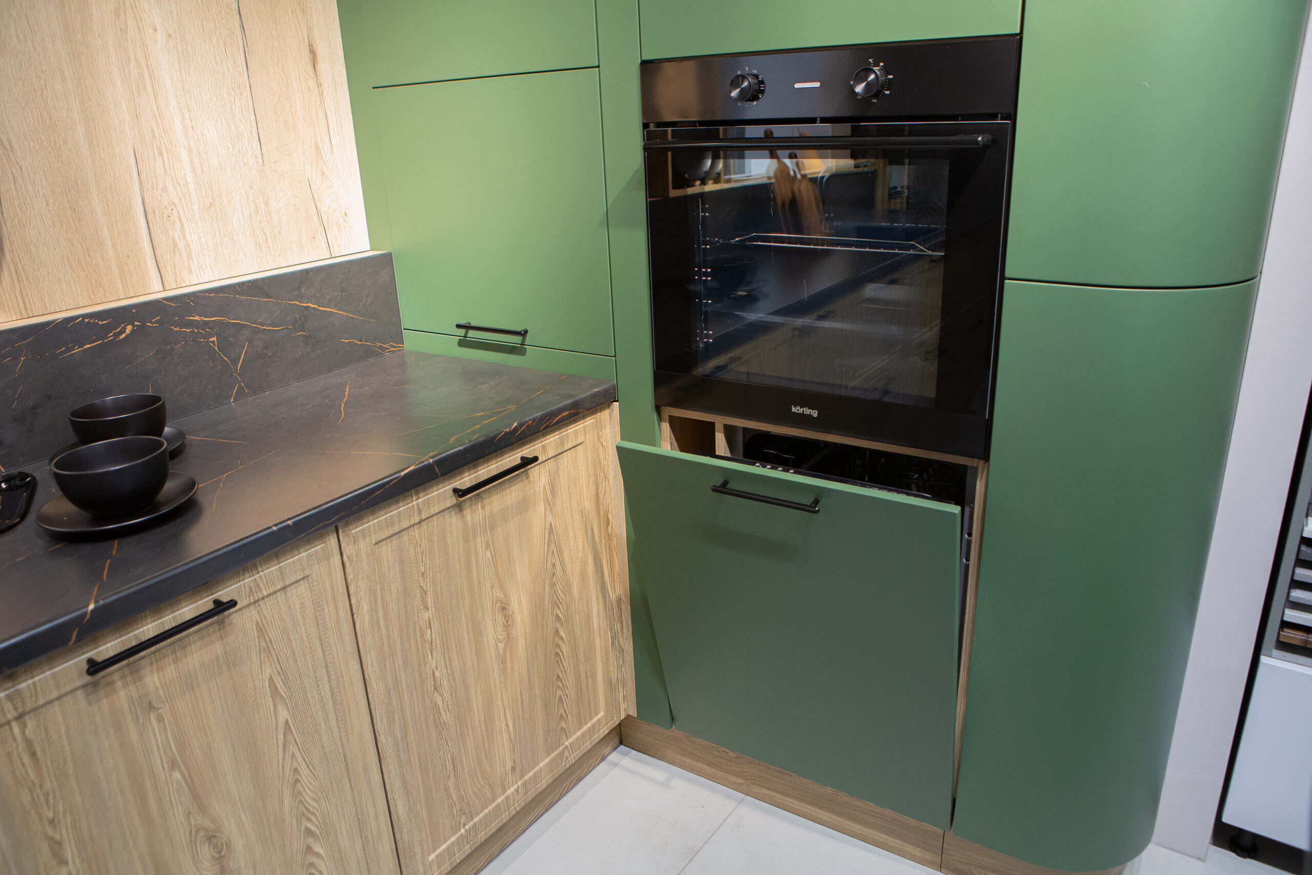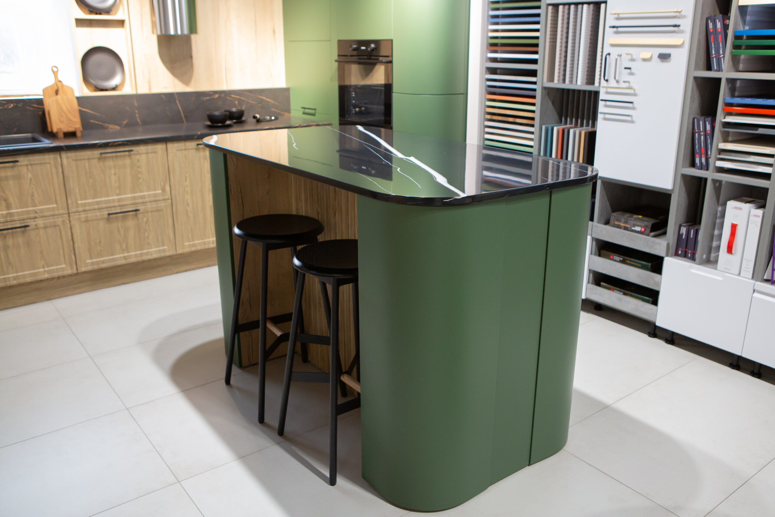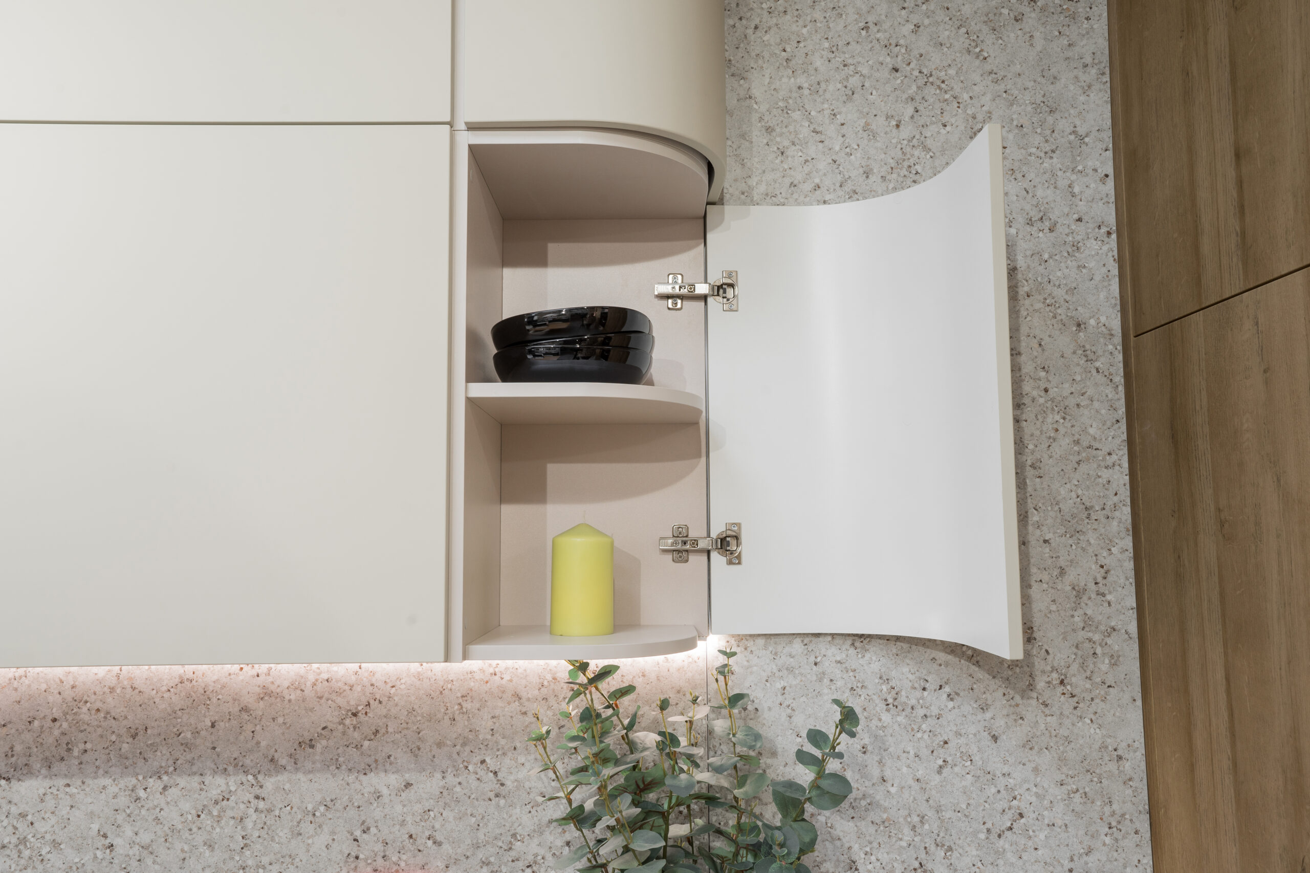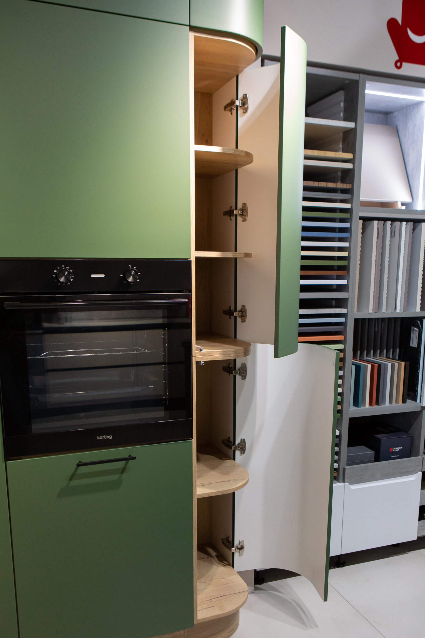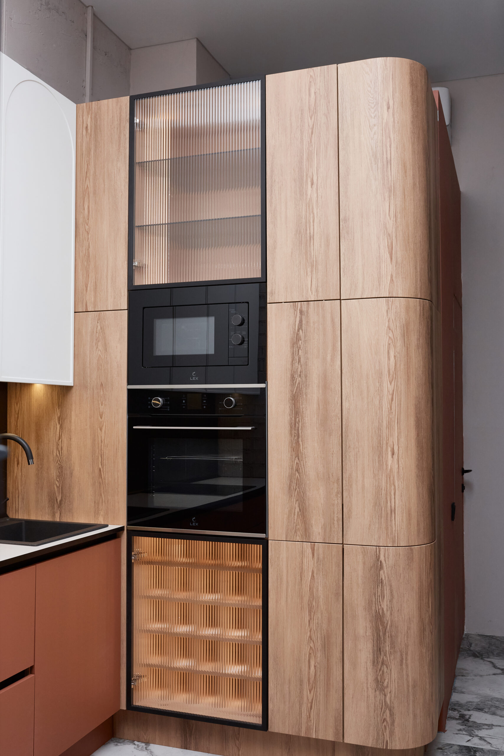 Радиусные фасады - это закругленные элементы кухонного гарнитура, которые придают мебели плавные, обтекаемые формы.
